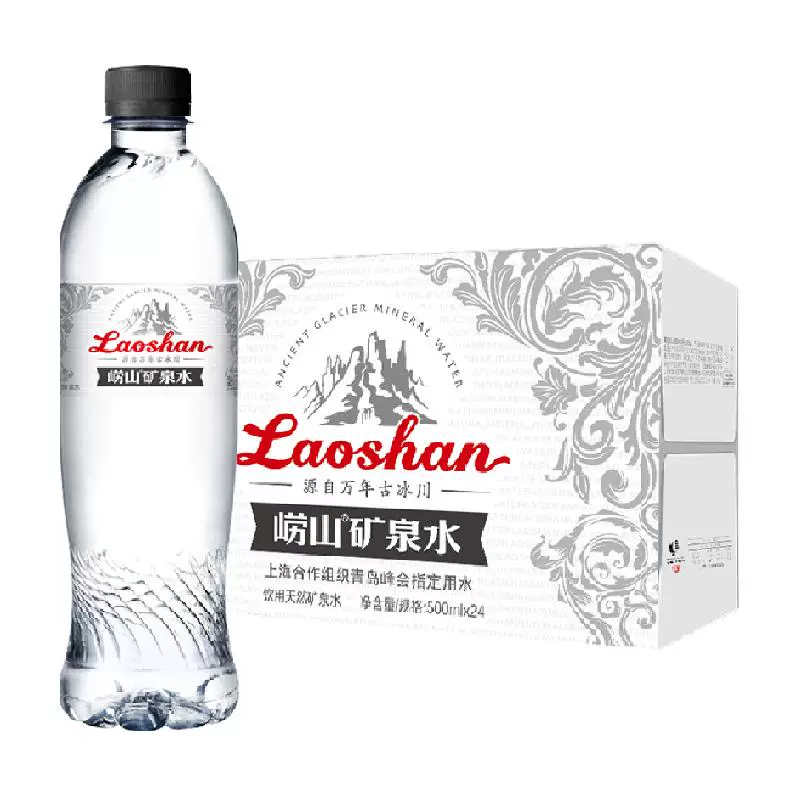 500ml百年经典崂山矿泉水:百年历史成就经典,定位高端,品质非凡,世界一流水质,富含对人体有益的矿物质及微量元素,保健价值极高,是国宴用水之首选。