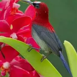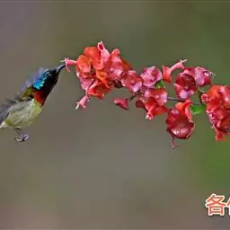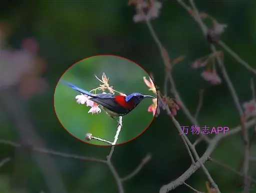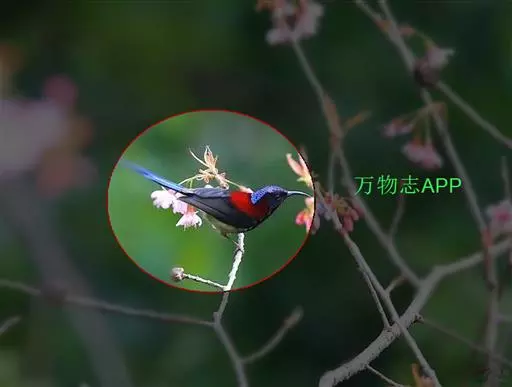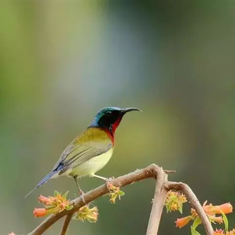 黑胸太阳鸟(学名:Aethopyga saturata):小型鸟类,体长9-15厘米。嘴细长而向下曲。雄鸟中央尾羽特长,尾呈楔形,头顶至后颈紫蓝色具金属光泽;背褐红色,腰有一黄色横带,尾上覆羽和尾紫蓝色;颏、喉和上胸乌黑色,有的下胸为硫黄色,其余下体灰橄榄绿色。雌鸟上体橄榄绿色具黄色腰带,下体灰橄榄绿色。