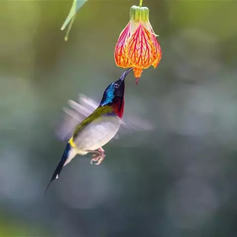 习性:常单独或成对活动,有时亦见3-5只成群或与柳莺等小鸟混群。喜欢活动在林缘疏林、灌丛、林间空地和溪流沿岸等开阔地方。性活泼,整天不停地在树间飞来飞去,啄食花蜜时常不断地扇动两翅,悬空在花上空啄取,有时又头朝下悬垂于枝叶和花朵上啄食。