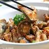 1、虾去头、去壳洗净,用盐、胡椒粉、鸡精和生粉腌15分钟;土豆和胡萝卜去皮,切块;热锅,倒油(油要多)待油热后将土豆块和胡萝卜块倒入炸5分钟,虾也要经过泡油这道工序,记住火一定要猛,否则虾肉不爽口