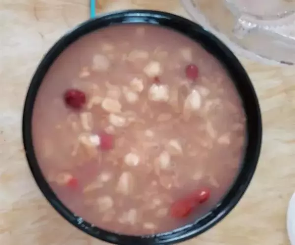 2.招大豆、玉米、大枣、莲子和枸杞子用冷水洗净,同银耳、香菇一齐放人砂锅中,加冷水文火煮沸,熬成粥状。