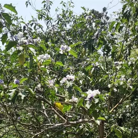 夜香树是茄科、夜香树属直立或近攀援状灌木。枝条细长而下垂。叶有短柄,叶片矩圆状卵形或矩圆状披针形,…