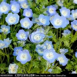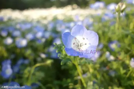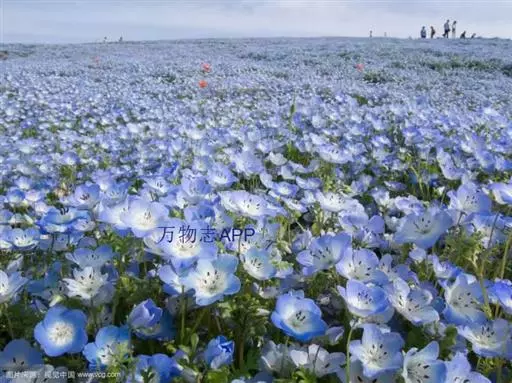 喜林草,Nemophila menziesii,是加利福尼亚一种通常野花。花色有红、黄、橙黄和蓝、白相间,亦有带紫色斑点者。