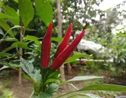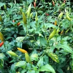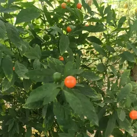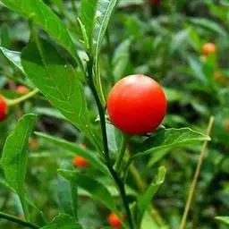朝天椒茄科辣椒属一年或多年生草本植物;卵形;花通常单只生长于二分叉间,花梗直立,花稍俯垂,…