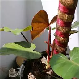 龟背竹属 攀援灌木。叶密,二列。叶柄具鞘,一叶片异向旋转。幼株的叶常小,卵形或卵状心形,具短柄,叶片紧贴茎上。成熟植株叶片各式,全缘,大都长圆形,不等侧,有时具空洞,稀羽状分裂;叶柄上叶鞘达中部或中部以上,宿存或撕裂为麻屑状,或全部脱落。