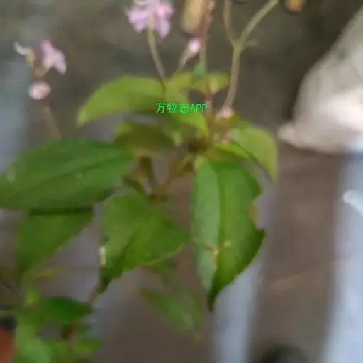小灌木,高30-120厘米;茎圆柱形或略四棱形,分枝多,小枝四棱形,棱上多少具狭翅,无毛。叶片坚纸质,卵形至椭圆形,顶端短渐尖,钝圆,基部楔形,长2.5-5厘米,宽1.5-2.5厘米,极少长6.5厘米,宽3厘米,边缘具疏浅锯齿或近全缘,3基出脉,两面无毛,叶面基出脉微凹,侧脉不明显,背面基’出脉隆起,侧脉不甚明显,细脉不明显;叶柄长5-12(-15)毫米,无毛。聚伞花序,腋生于枝条顶端,有花3-9朵或略多,长3-7厘米,宽约2厘米,无毛;总梗纤细,直径不到0.5毫米;苞片小,钻形,长1毫米以下;花梗长约5毫米,下弯;花萼短钟形,具四棱,长约2.5毫米,裂片呈浅波状,顶端具小短尖头;花瓣玫瑰色至紫色,卵形,顶端急尖,略偏斜,长约5毫米,宽3毫米;雄蕊4长4短,长者长约8.5毫米,花药披针形,呈镰状弯曲,长约3.5毫米,药隔下延呈短柄,短者长约7毫米,花药长约3毫米,基部具小瘤,药隔下延呈短距;子房半下位,扁球形,顶端具4个有浅裂的突起,无毛。蒴果杯形,四棱形,顶端平截,露出宿存萼外;宿存萼浅杯形,四棱,顶端冠以浅波状宿存萼片,长约3毫米,直径约4毫米。花期6-8月,果期8-10月。