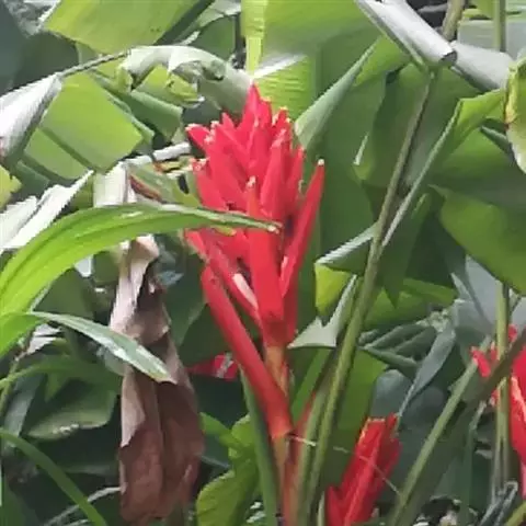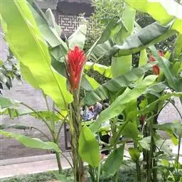 紫苞芭蕉形如一枝亭亭玉立、含苞待放的荷花,但却开在高高的芭蕉树上,这就是紫苞芭蕉。