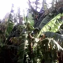 红蕉,假茎高1-2米。叶片长圆形,长1.8-2.2米,宽68-80厘米,叶面黄绿色,叶背淡黄绿色,…