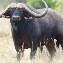 非洲野水牛:共有5个亚种。头体长2.1-3.4米,身高1-1.7米,体重300-900千克。胸膛宽…