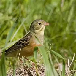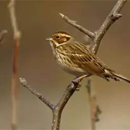 栗斑腹鹀:属小型鸣禽。体重19-25克,体长145-167毫米。头顶至背栗红色,眼先和颧纹黑褐色,…
