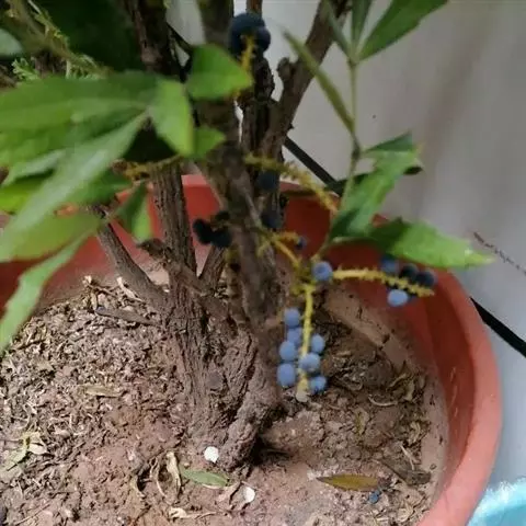 浆果球形,直径4-6毫米,紫黑色,被白粉。花期7-9月,果期9-11月。