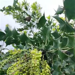 十大功劳枝干酷似南天竹,栽在房屋后,白粉墙感觉调和,庭院,园林围墙作为基础种植,颇为美观。在园林中可植为绿篱、果园、菜园、的四角作为境界林,还可盆栽放在门厅入口处,会议室、招待所、会议厅、使人清幽可爱,作为切花更为独特。