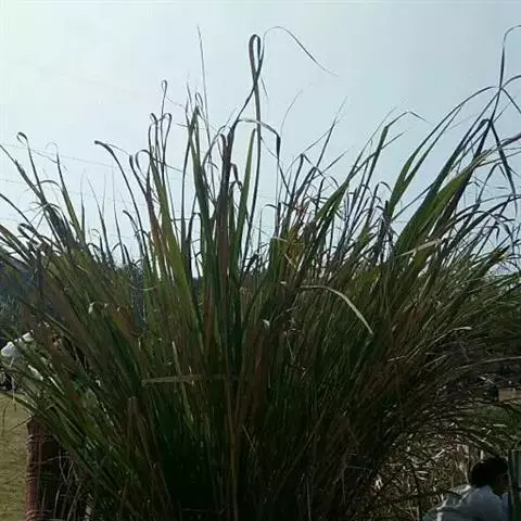 多年生,高大丛生草本。秆高1.5-3米,基部坚硬木质,花序以下部分具白色丝 蔗茅 状毛,有多数具髭毛的节,节下被白粉。叶鞘大多长于节间,上部或边缘被柔毛,鞘口生繸毛;叶舌质厚,长1-2毫米,顶端截平,具纤毛;叶片宽条形,长20-60厘米,宽1-2厘米,扁平或内卷,基部较窄,顶端长渐尖,无毛,下面被白粉,微粗糙,边缘粗糙, 中脉粗壮。圆锥花序大型直立,长20-30厘米,宽2-3厘米,主轴密生丝状柔毛;分枝稠密,长2-5厘米,二回分出小枝,总状花序轴节间与小穗柄长为小穗的2/3-3/4,边缘具长丝状毛;小穗长2.5-3.5毫米,基盘具白色或浅紫色,长为小穗3倍的丝状毛,第一颖厚纸质,脊间无脉,扁平,无毛,近边缘具一短脉,生丝状柔毛,顶端膜质,渐尖;第二颖稍长于第一颖,顶端膜质渐尖,具3脉,上部边缘具纤毛;第一外稃披针形,等长或稍短于颖,顶端尖或芒状,尤其在有柄小穗中芒长达6毫米,明显伸出于小穗之外;第二外稃长约1毫米,线状披针形,无毛,顶端延伸成芒,芒长10-14毫米,细直,微粗糙;第二内稃小,长约0.5毫米;雄蕊3枚,花药长约1毫米;柱头羽毛状,自小穗顶端之两侧伸出;鳞被2,无毛。染色体2n=20(Mahra et Sharma, 1975;Kalia, 1978)。花果期6-10月。