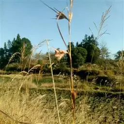 蔗茅,别名:桃花芦,(学名:Erianthus rufipilus (Steud.) Griseb.)禾本科,蔗茅属 。叶鞘大多长于节间,上部或边缘被柔毛,鞘口生繸毛;叶舌质厚,顶端截平,具纤毛;叶片宽条形,扁平或内卷,基部较窄,顶端长渐尖,无毛,下面被白粉,微粗糙,边缘粗糙, 中脉粗壮。圆锥花序大型直立,主轴密生丝状柔毛;分枝稠密,二回分出小枝,边缘具长丝状毛;基盘具白色或浅紫色,花果期6-10月。