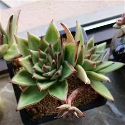 大和锦是景天科拟石莲花属的多肉植物。肉质叶排成紧密的莲座状,广卵形至散三角卵形,背面突起呈龙骨状,…