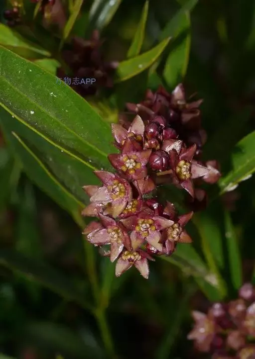 牛心朴子,原名:华北白前,拉丁文名:Cynanchum hancockianum (Maxim.) Al. Iljinski.萝藦科、鹅绒藤属多年生直立草本,根须状;茎被有单列柔毛及幼嫩部分有微毛外,余皆无毛,单茎或略有分枝。叶对生,薄纸质,卵状披针形,顶端渐尖,基部宽楔形;在边缘网结,有时有边毛;顶端腺体成群。伞形聚伞花序腋生,比叶为短,花冠紫红色,裂片卵状长圆形;副花冠肉质、裂片龙骨状,在花药基部贴生;柱头圆形,略为突起。蓇葖双生,狭披针形,向端部长渐尖,基部紧窄,外果皮有细直纹,种子黄褐色,扁平,长圆形,种毛白色绢质,花期5-7月,果期6-8月。