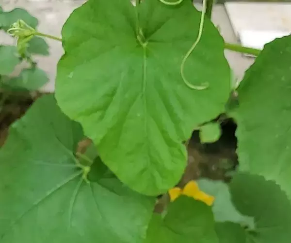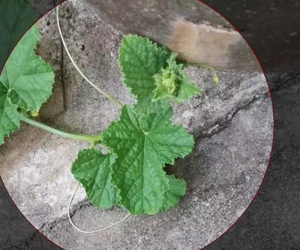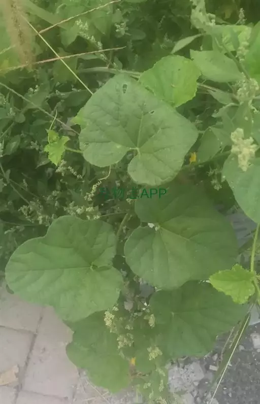 一年生匍匐或攀援草本;茎、枝有棱,有黄褐色或白色的糙硬毛和疣状突起。卷须纤细,单一,被微柔毛。叶柄长8-12厘米,具槽沟及短刚毛;叶片厚纸质,近圆形或肾形,长、宽均8-15厘米,上面粗糙,被白色糙硬毛,背面沿脉密被糙硬毛,边缘不分裂或3-7浅裂,裂片先端圆钝,有锯齿,基部截形或具半圆形的弯缺,具掌状脉。