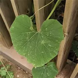 症状:此病主要传染叶片,叶柄、茎蔓也可受害,果实受害少。发病初期,叶片上产生白色粉状小霉点,不久逐渐扩大成一片白粉层即病菌菌丝体。会生孢子梗及分生孢子,以后蔓延到叶背、叶、蔓、嫩果上,后期白粉层变灰白色,白粉层中出现花生、散生或堆生,黄褐色,小粒点后变成黑色,即病菌有性世代的闭囊壳,病叶片枯焦发脆,致使果实早期生长缓慢。调查发病中心,掌握在植株发病初期及早喷药,控制病原蔓延,选用15%粉锈宁可湿性粉剂1000-1500倍液或20%粉锈宁乳油1500-2000倍液,相隔15-20天喷1次,防治效果显著。或用50%硫磺悬浮剂200-300倍液,用30%敌菌酮100倍液或用50%甲基托布津可湿性粉剂1000倍液,50%甲基托布津可湿性粉剂500-800倍液,多硫磷1000倍液,每隔7-10天1次,每667平方米喷药剂60千克左右。