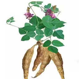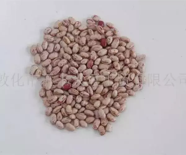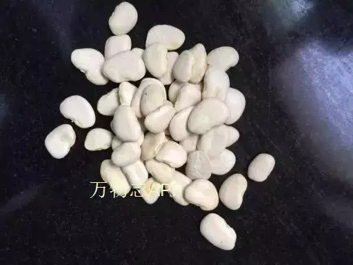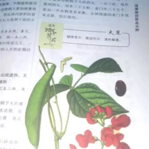 圆锥根系,幼茎有毛,开白花的幼茎绿色,开鲜红花的幼茎紫色,三出复叶,互生,复叶的叶柄长10-16cm,小叶的叶柄短,叶卵圆至棱形,全缘,叶面色绿,叶背灰白。腋生总状花序,花梗细长,有棱,着生小花的花轴比花梗长。小花对生。花冠大,色白或原红或鲜红,荚果略弯,成熟时褐黄色,每荚有种子2-4粒,多的可达9粒,种子宽肾形,凸扁,百粒重90-150g。粒色有单色及花色,脐大,长圆形,子叶浅黄多。