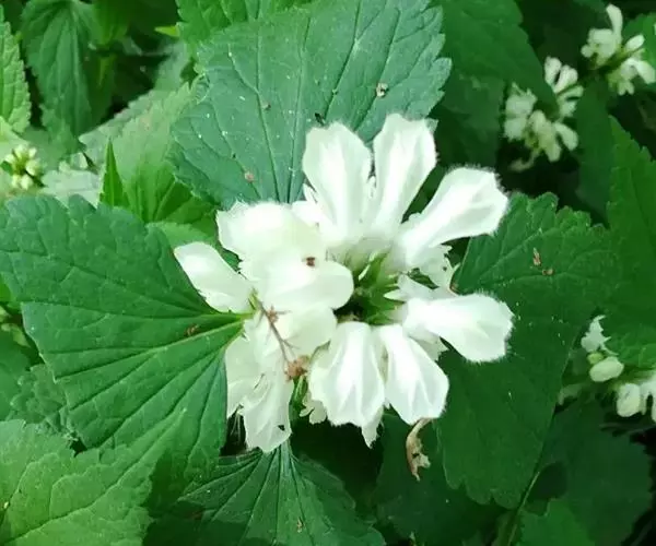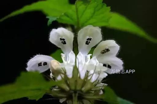 出处:出自《植物名实图考》:野芝麻,临江、九江山圃中极多。春时丛生,方茎四棱,棱青,茎微紫,对节生叶,深齿细纹,略似麻叶;木平末尖,面青背淡,微有涩毛,绕节开花,色白,皆上矗,长几半寸。上瓣下覆如勺,下瓣圆小双歧,两旁短缺,如禽张曰。中森扁须,随上瓣弯垂,如舌抵上腭。星星黑点。花萼尖丝,如针攒簇。叶茎味淡微辛,作芝麻气而更腻。湖南圃中尤多,蔓夷不尽,或即呼为白花益母草。