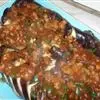 14. 将炒好的洋葱肉末均匀的浇在茄子上;