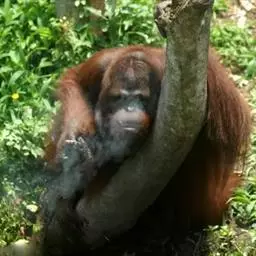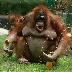 猩猩也叫人猿,灵长目人科 的一属,与猴子最大不同的地方就是没有尾巴,能用手或脚拿东西。马来语和印…