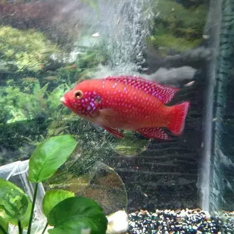 红魔鬼鱼,学名为厚唇双冠丽鱼,也叫火鹤鱼,是慈鲷科丽体鱼属下的一种观赏鱼类。血鹦鹉鱼的父本鱼种。…