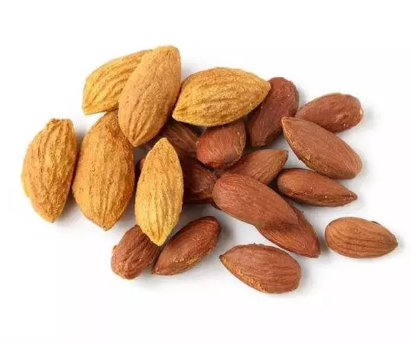 该品呈纺锤形或椭圆形,长2~3cm,直径1~1.5cm。两端钝圆,基部略尖而歪,具浅色的圆形种脐,表面棕色或暗棕色,微有光泽,具不规则的干缩皱纹。外层种皮极薄,质脆,易脱落。中层种皮较厚,黑褐色,质松易碎,遇水膨胀成海绵状。断面可见散在的树脂状小点。内层种皮可与中层种皮剥离,稍革质,内有2 片肥厚胚乳,广卵形;子叶2 枚,菲薄,紧贴于胚乳内侧,与胚乳等大。气微,味淡,嚼之有黏性。泡在水中会膨胀起来,因而名为胖大海。