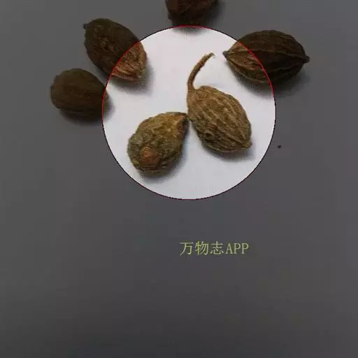 呈纺锤形或椭圆形,长2~3cm,直径1~1.5cm。先端钝圆,基部略尖而歪,具浅色的圆形种脐,表面棕色或暗棕色,微有光泽,具不规则的干缩皱纹。外层果皮极薄,质脆,易脱落。中层果皮较厚,黑褐色,质松易碎,遇水膨胀成海绵状。断面可见散在的树脂状小点。内层果皮可与中层果皮剥离,稍革质,内有2片肥厚胚乳,广卵形;子叶2枚,菲薄,紧贴于胚乳内侧,与胚乳等大。气微,味淡,嚼之有黏性。
