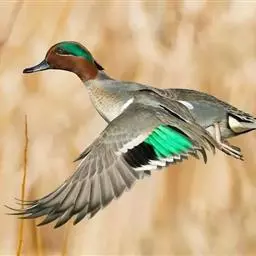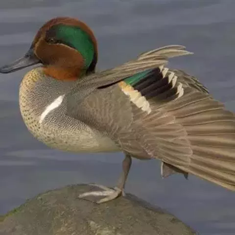绿翅鸭是小型鸭类,体长37厘米,体重约0.5千克。嘴脚均为黑色。雄鸟头至颈部深栗色,…