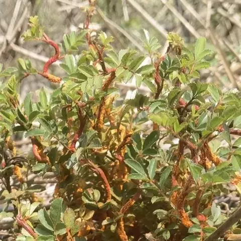 锈病是蔷薇一种常见的病害。叶片和新枝条都可能发病。病情严重,会引起叶片大面积脱落,以致使花卉失去观赏价值,甚至死亡。如果发现此病,要及时处理,可用800倍液三唑酮叶面喷雾,每周一次,连续3-4,此疾病可基本痊愈。