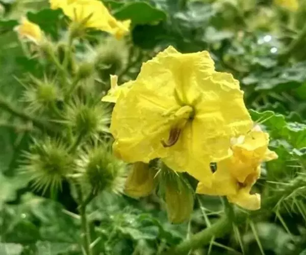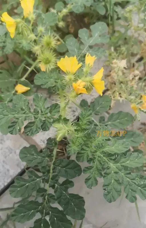 黄花刺茄在国家标准中又叫刺萼龙葵,为茄科茄属一年生草本植物。原产于北美,别称刺萼龙葵。常生长于开阔的、受干扰的生境,如田野、河岸、过度放牧的牧场、庭院、谷仓前、畜栏、路边、垃圾场等地。原产新热带区北美洲和美国西南部,除佛罗里达州已经遍布美国,并且已分布到加拿大、墨西哥、俄罗斯、韩国、南非、澳大利亚等国家或地区。