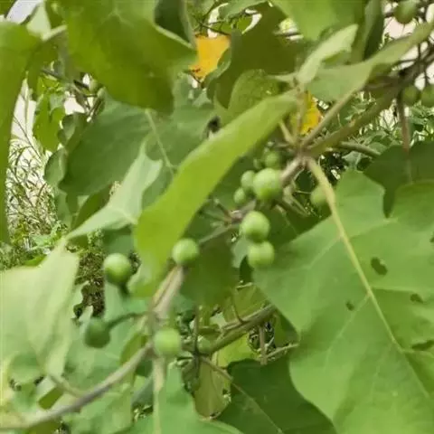 茄茄科,茄属植物。茄直立分枝草本至亚灌木,高可达1米,小枝,叶柄及花梗均被6-8-分枝,平贴或具短…