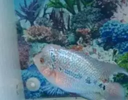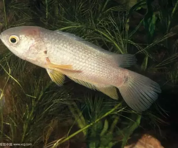 龟壳攀鲈 玻璃市,加央出现罕见白色攀鲈(俗称过山鲫),由一名当地70岁老者饲养了约5个月。 在一次为鱼缸换水时,才赫然发现这只白色攀鲈,让他惊奇不已。