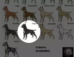 头部线条分明,混合着力量,优雅个性。颅骨巨大,平坦或略圆、深,两耳之间宽。眼睛中等大小,圆至杏仁状,分得很开,在颅骨上的位置较低。鼻子大而宽,鼻孔分得很开。下颚发达,宽而深。嘴唇匀称。绷紧。完整的、对称的雪白的牙齿,剪状咬合。背部强壮宽阔,肌肉发达、水平。尾巴是背线的自然延伸,逐渐变细。圆脚,与犬的大小呈比例,拱起,紧密。肉垫硬,粗糙,能够很好地减缓冲击力 。