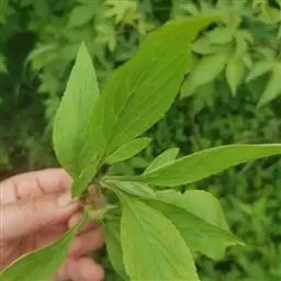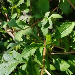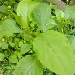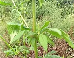 多年生草本,高50-100(120)厘米;地下根状茎长而横走,偶在地表匍匐生长;茎密被白色倒生粗毛或仅沿二叶柄相连的侧面具纵列倒生短粗伏毛,有时几无毛。基生叶丛生,叶片卵形、宽卵形或卵状披针形至长圆状披针形,长4-10(-25)厘米,宽2-5(-18)厘米,先端渐尖,边缘具粗钝齿,基部楔形下延,不分裂或大头羽状深裂,常有1-2(有3-4)对生裂片,叶柄较叶片稍长;茎生叶对生,与基生叶同形,或菱状卵形,先端尾状渐尖或渐尖,基部楔形下延,边缘具粗齿,上部叶较窄小,常不分裂,上面均鲜绿色或浓绿色,背面绿白色,两面被糙伏毛或近无毛;叶柄长1-3厘米,上部叶渐近无柄。