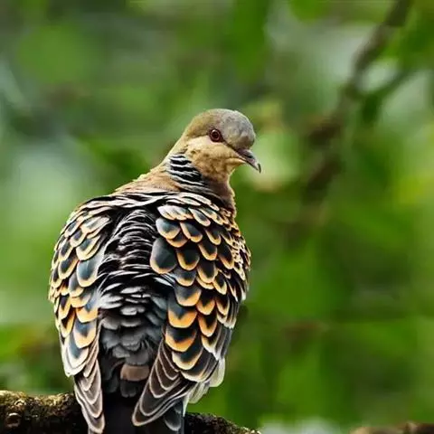 山斑鸠,是鸽形目鸽鸠科斑鸠属鸟类,又名金背斑鸠、棕背斑鸠、山鸠、金背鸠、麒麟斑、麒麟鸠、东方斑鸠、绿斑鸠、山鸽子。山斑鸠颈侧具明显黑白色条纹的块状斑,上体深褐色、具扇贝状斑纹,羽缘棕色,尾羽近黑色,下体多偏粉色。虹膜黄色,喙灰色,脚粉色。山斑鸠是留鸟,在中国常见且分布广泛。此外,还分布于不丹、尼泊尔、巴基斯坦、印度、日本等国。栖息于针阔混交林、季风常绿阔叶林、果园及农耕区,多成对活动于开阔农耕区、村舍、寺院周围及防火林带。取食于地面,主要觅食植物种子、果实、嫩芽等,也吃昆虫。山斑鸠飞翔时鼓翼快速,叫声为反复而低沉的“咕咕咕”声。繁殖期在4-7月,营巢于林中树上,通常一年繁殖2窝,窝卵数2枚,由雌雄亲鸟轮流孵卵,孵化期18~19天。山斑鸠的肉、卵可食,肉入药可益气明目、强筋壮骨,治久病气虚、衰弱无力、两目昏暗等病症。山斑鸠啄食杂草种子,对农田清除杂草有益;但有时也刨食农作物及树的种子。山斑鸠