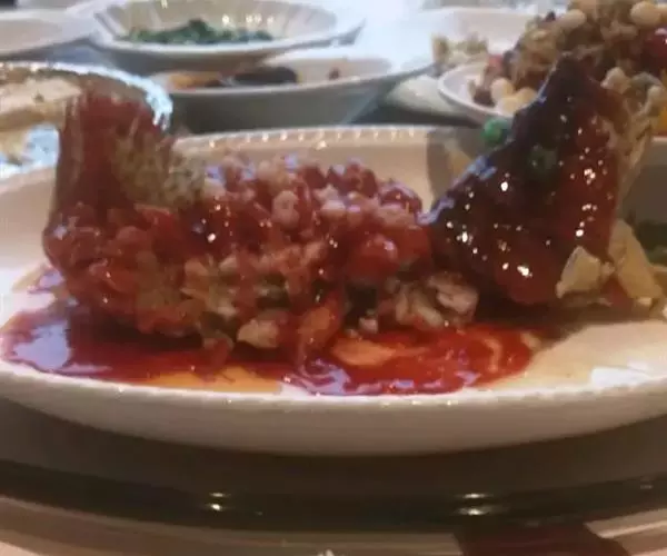 松鼠桂鱼,看起来色泽橘黄,吃起来外脆里嫩、酸甜适口。