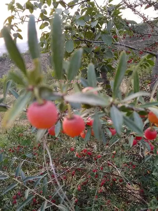 小灌木,高约2米,多分枝;枝条灰绿色或紫褐色,无毛,皮成片状剥落;小枝红褐色,无毛,有稜条;枝刺直立或弯曲,刺长6-10毫米,通常不生叶;冬芽小,卵圆形,先端急尖,紫红色,外面有毛。叶互生,稀丛生,叶片卵状披针形或披针形,极稀带形,长3-6.5厘米,宽6-20毫米,先端急尖、渐尖或尾尖,基部近圆形或宽楔形,全缘或有稀疏锯齿,上面深绿色,叶脉下陷,下面淡绿色,叶脉突起,两面无毛或有少数睫毛;叶柄长5-10毫米,无毛;托叶小,膜质,披针形,先端渐尖,全缘,内面有毛,脱落。
