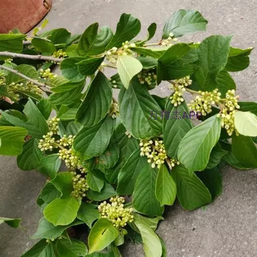 花数个或10余个密集成腋生聚伞花序,总花梗长4-10,稀15毫米,被柔毛,花梗长2-4毫米,被短柔毛;萼片三角形与萼管等长,外面有疏微毛;花瓣近圆形,顶端2裂;雄蕊与花瓣等长而短于萼片;子房球形,无毛,3室,每室具1胚珠,花柱不分裂,柱头不明显。核果球形或倒卵状球形,绿色或红色,成熟时黑色或紫黑色,长5-6毫米,直径6-7毫米,果梗长3-6毫米,无或有疏短毛,具3分核,各有种子1个;种子无沟。花期5-8月,果期8-10月。