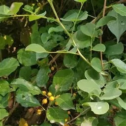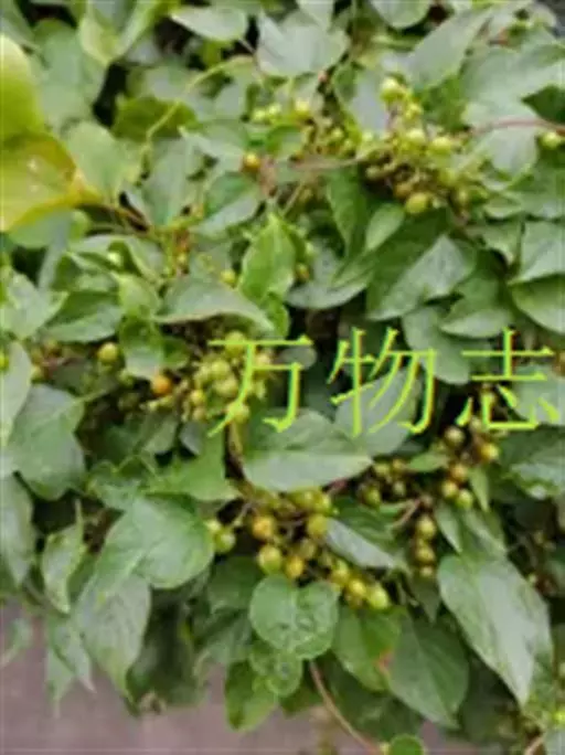 刺苞南蛇藤(学名:Celastrus flagellaris Rupr.):卫矛科南蛇藤属藤状灌木。小枝光滑,叶阔椭圆形或卵状阔椭圆形,稀倒卵椭圆圈,叶主脉上具细疏短毛或近无毛;叶柄细长,聚伞花序腋生,花序近无梗,雄花萼片长方形,花瓣长方窄倒卵形,花盘浅杯状,顶端近平截,子房球状。蒴果球状,种子近椭圆状,4-5月开花,8-9月结果。