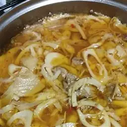 4、转中火煮半小时,加入百合,冰糖煮开即可。