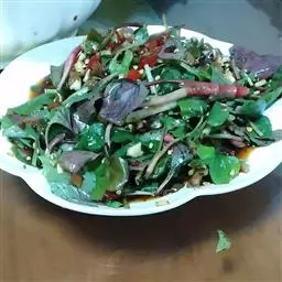 5、白糖出锅时放入并充分拌匀。