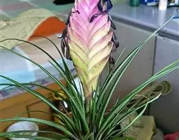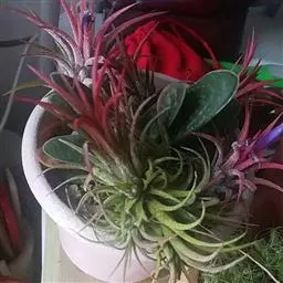 1、种植地点:可用铁丝(注意所有凤梨属植物都不能忍受铝和铜,长期接触会致死)、竹条等韧性材料弯成带钩的圆圈,在凤梨、铁兰成株上截取数段,悬挂于圈上即可;亦可以直接缠挂在木本植物、花卉或竹类等多年生植物的枝条上;即使悬挂于住宅或办公室类的各种支架物上,亦可正常生长。