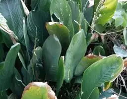 竹芋对高浓度肥料很敏感,不要过量施肥,否则易出现烧叶现象,所以定期检查盆内基质的EC值、 pH值很重要。当基质EC值在0.3毫秒/厘米以下则浇肥水,反之浇清水。上盆后,注意观察根系的生长发育状况,适时浇第1遍肥水,这一点尤为重要,施肥过早在盆内积累,过晚则影响生长速度。第1遍用EC值为1.0毫秒/厘米、pH值为5.5的肥水浇灌,不管用单一肥或复合肥,钾的含量为氮含量的1.5-2.0倍,生产出的叶片不仅光泽好而且肥厚浓绿。在温室温度低的情况下,注意控制浇肥量,否则会引起叶片“吐水”现象,此状况持续时间长,则会出现焦边。施第1遍肥后,随着植株生长慢慢加大肥水的EC值,从1.2-1.4毫秒/厘米,最后控制在1.4毫秒/厘米,根据基质的EC值决定。