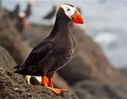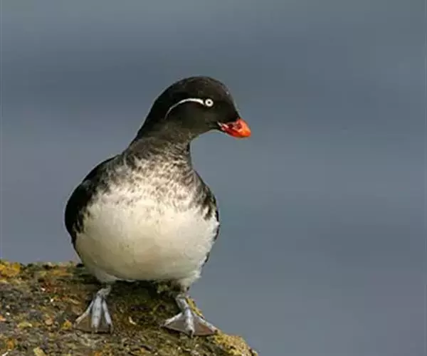 角嘴海雀,是海雀科、角嘴海雀属的中型海鸟,体长32-41厘米,嘴短而粗呈圆锥状、橙色。夏羽上嘴基部…