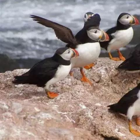 角海鹦:是鸻形目海雀科的鸟类,体重581-648克,体长约32厘米,翼展18-20厘米。是一种身体…