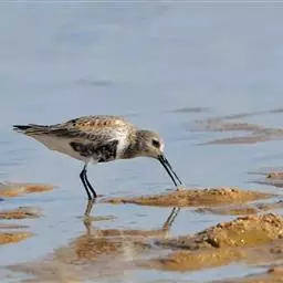 白腹海鹦,前趾间有蹼膜,后趾缺如。翅窄而短小,尾短。体羽黑白二色,雌雄羽色相似