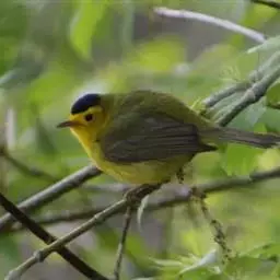黑脸鹟莺:体长10厘米,是有特色的体小而多彩的莺鸟。粗眉纹,颏、喉及尾下覆羽黄色,脸罩黑,…