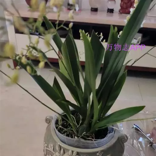 文心兰(Oncidium hybridum),又名吉祥兰,跳舞兰、舞女兰、金蝶兰、瘤瓣兰等,叶片1~3枚,可分为薄叶种,厚叶种和剑叶种。兰科中的文心兰属植物的总称,本属植物全世界原生种多达750种以上,而商业上用的千姿百态的品种多是杂交种,植株轻巧、潇洒,花茎轻盈下垂,花朵奇异可爱,形似飞翔的金蝶,极富动感,是世界重要的盆花和切花种类之一。它的故事波及深远,相传宋美龄访白宫之时,一见钟情于此花,发现花瓣像极了中国汉字中的“吉”字,寓意吉祥,因此取名为“吉祥兰”。